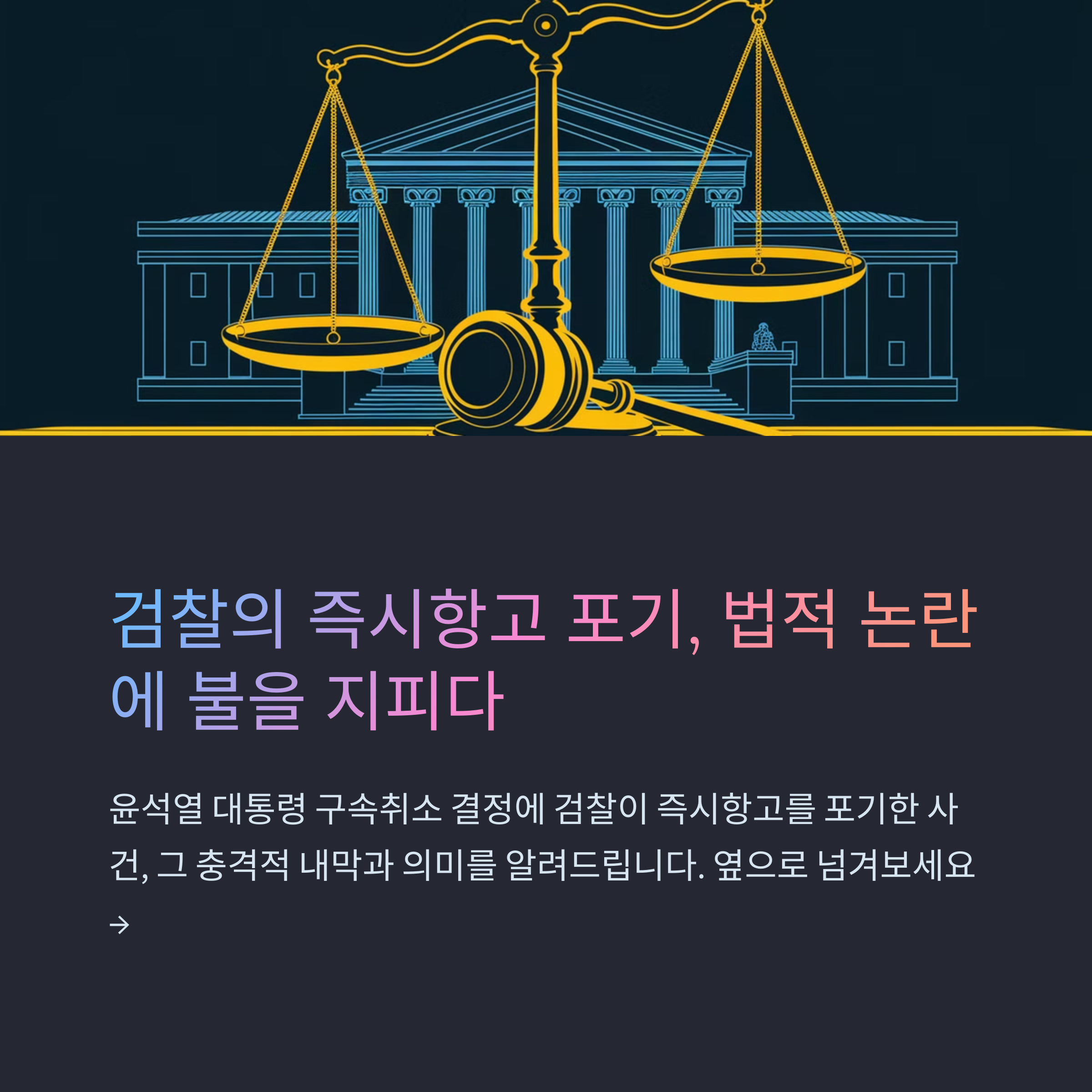 지귀연 판사의 법 해석은 형사소송법의 명확한 규정을 무시하고 자의적인 기준을 적용했다는 점에서 강한 비판을 받아야 합니다. 특히, 내란 혐의를 받는 현직 대통령 사건에서 기존 관행을 뒤집는 판단을 내린 것은 법적 일관성을 훼손하며 사법부의 공정성에 의문을 제기합니다. 또한, 검찰이 즉시항고를 포기한 것은 단순히 절차적 실책을 넘어 내란 피의자 윤석열 대통령의 공범임을 드러내는 행동으로 해석될 수 있습니다. 이러한 대응은 국민에게 사법체계가 정치적 압력에 굴복했다는 강한 인상을 남기며, 사법부와 검찰 모두에게 책임 있는 자세가 요구됩니다.