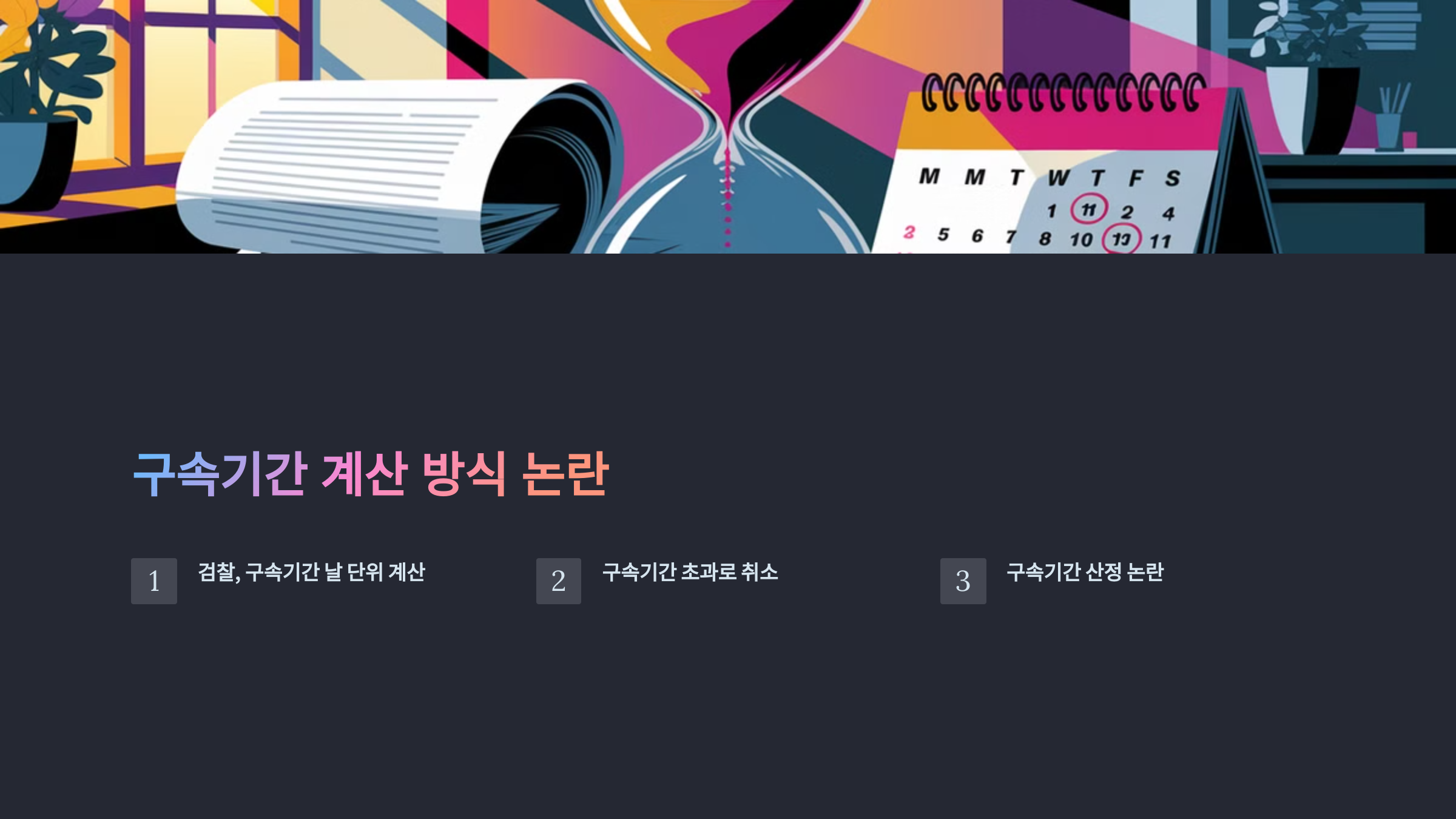 검찰은 형사소송법에 따라 구속기간을 날 단위로 계산해 왔습니다. 예를 들어, 영장실질심사(구속 전 피의자 심문)에 소요된 시간이 하루를 넘기면 이를 이틀로 계산하여 구속기간에서 제외했습니다.