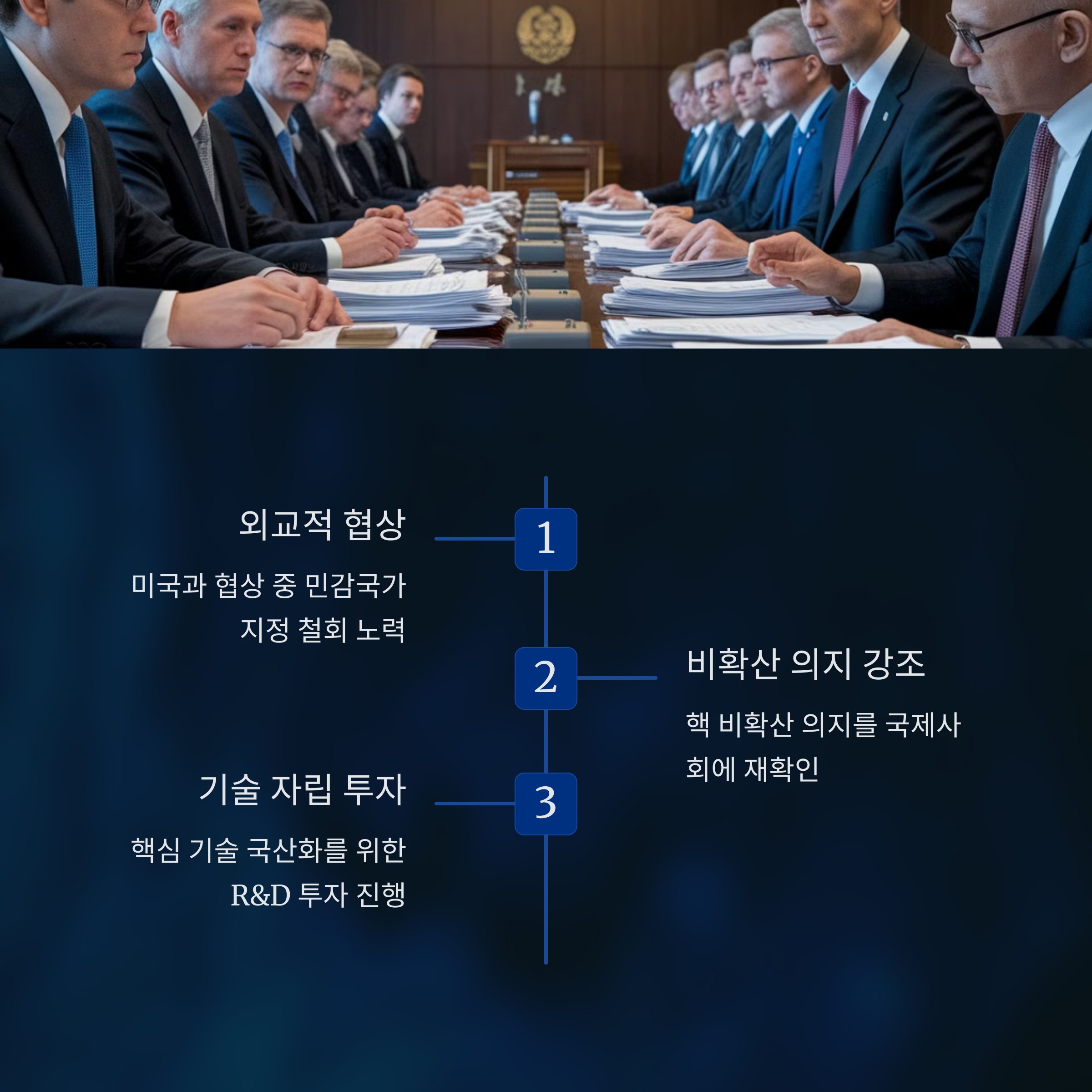 A5: 외교 협상 강화, R&D 투자 확대, 국제 협력 다변화를 통해 문제 해결을 모색하고 있습니다.
